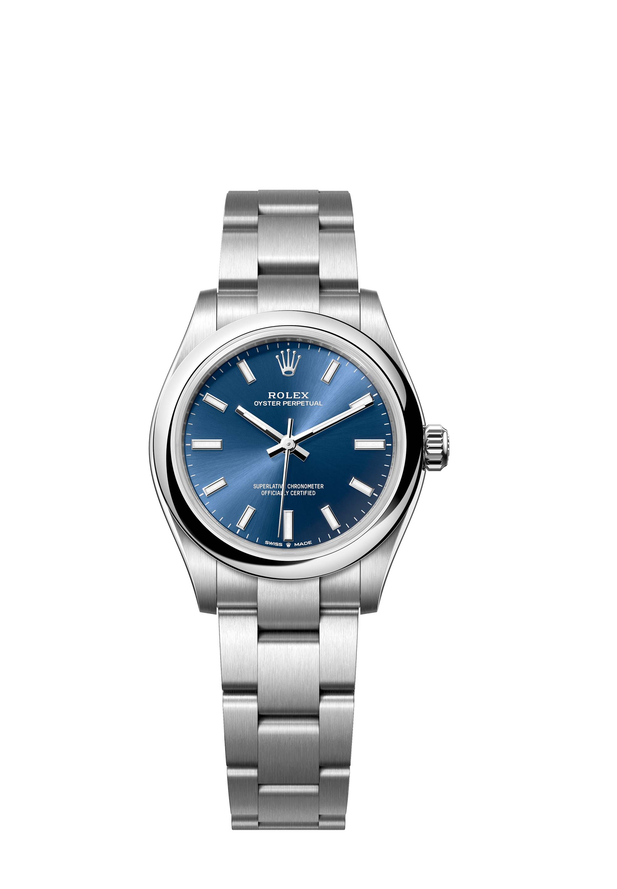 The Oyster Perpetual 31 with a bright blue dial and an Oyster bracelet.