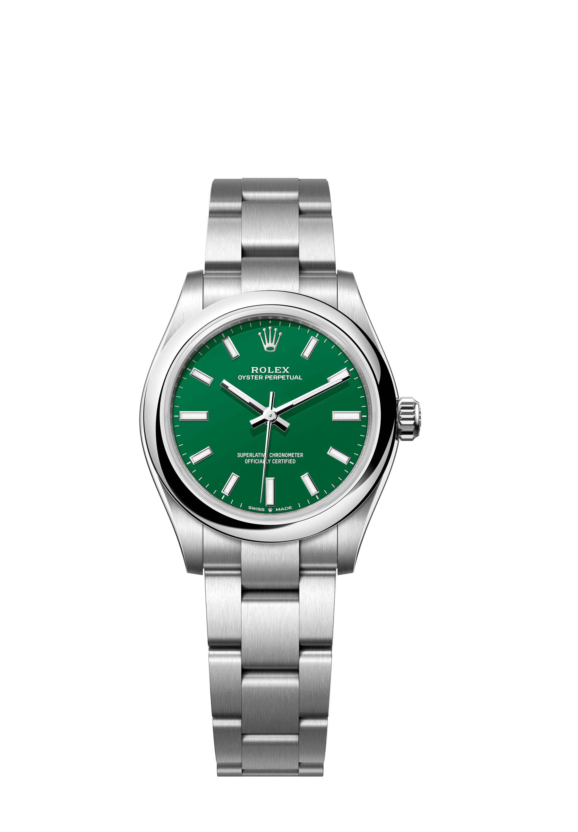 The Oyster Perpetual 31 with a green dial and an Oyster bracelet.