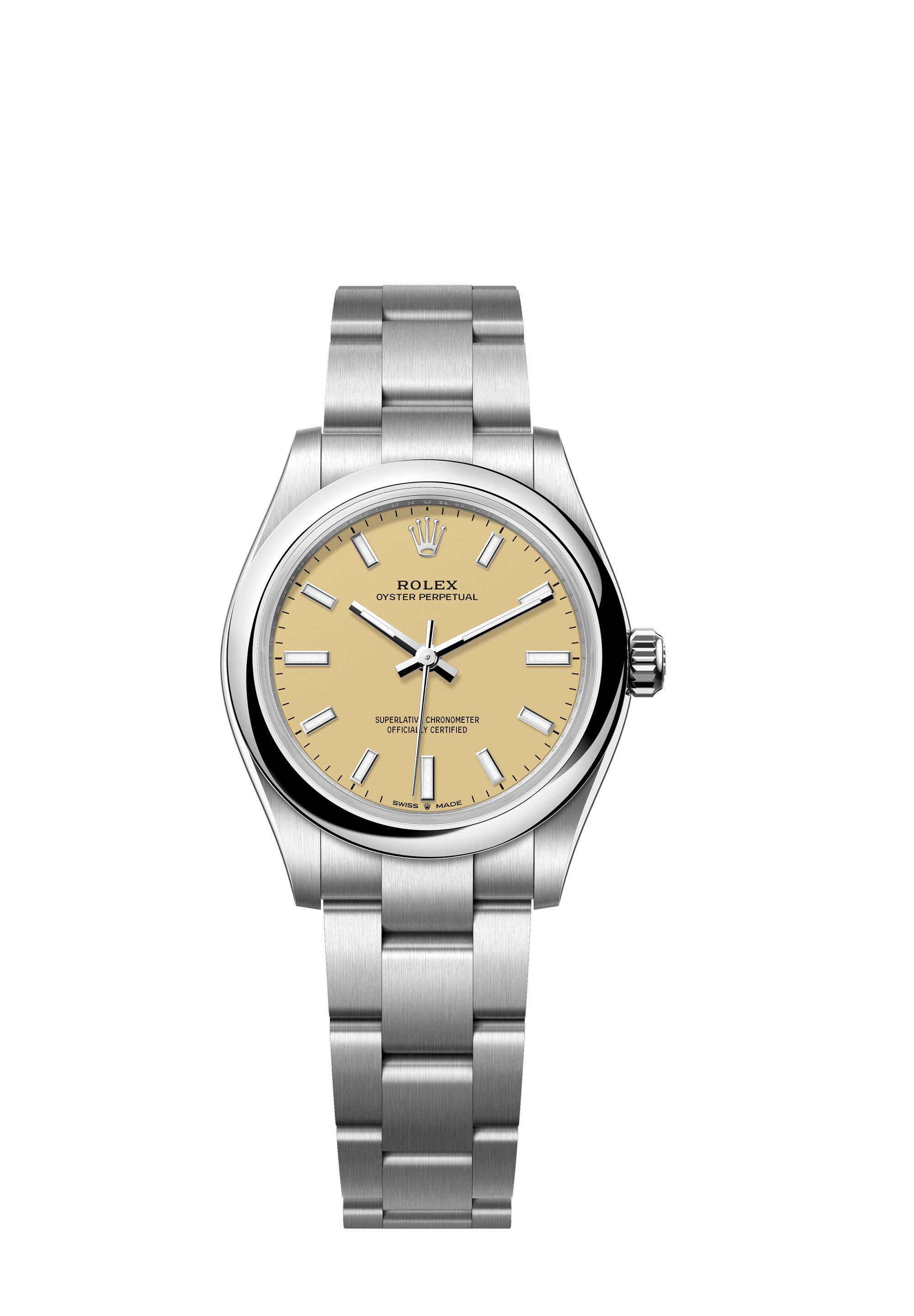 The Oyster Perpetual 31 with a beige dial and an Oyster bracelet.