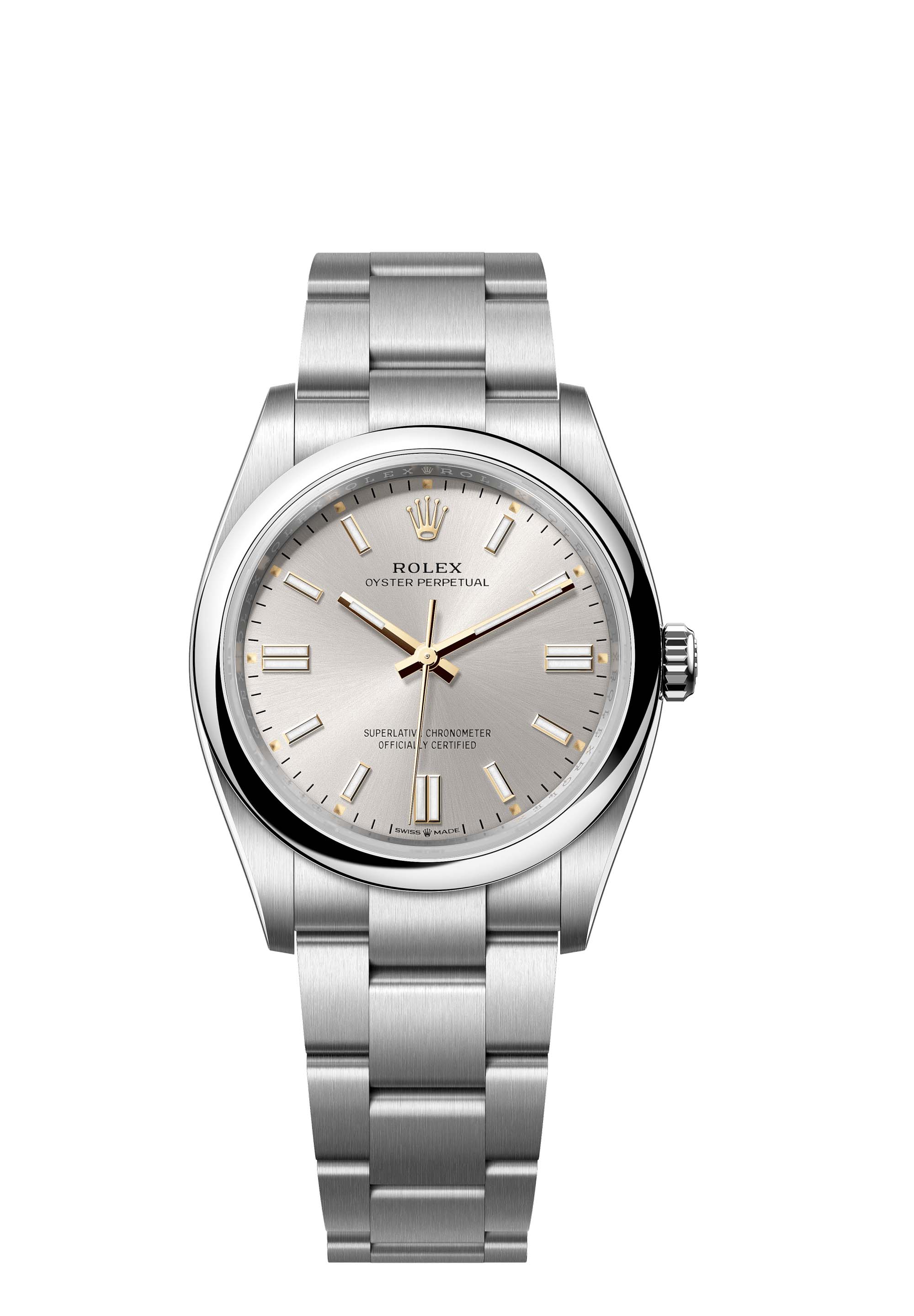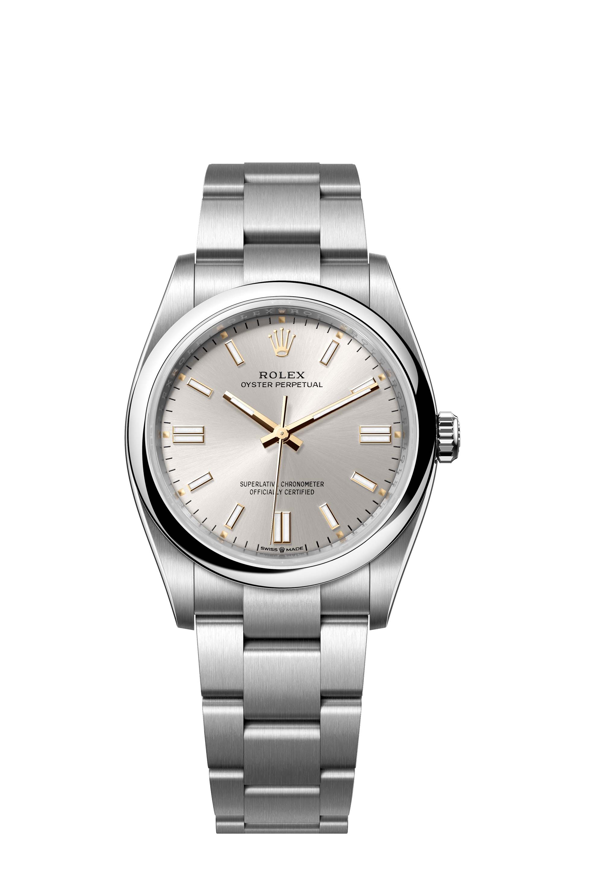 The Oyster Perpetual 36 with a silver dial and an Oyster bracelet.