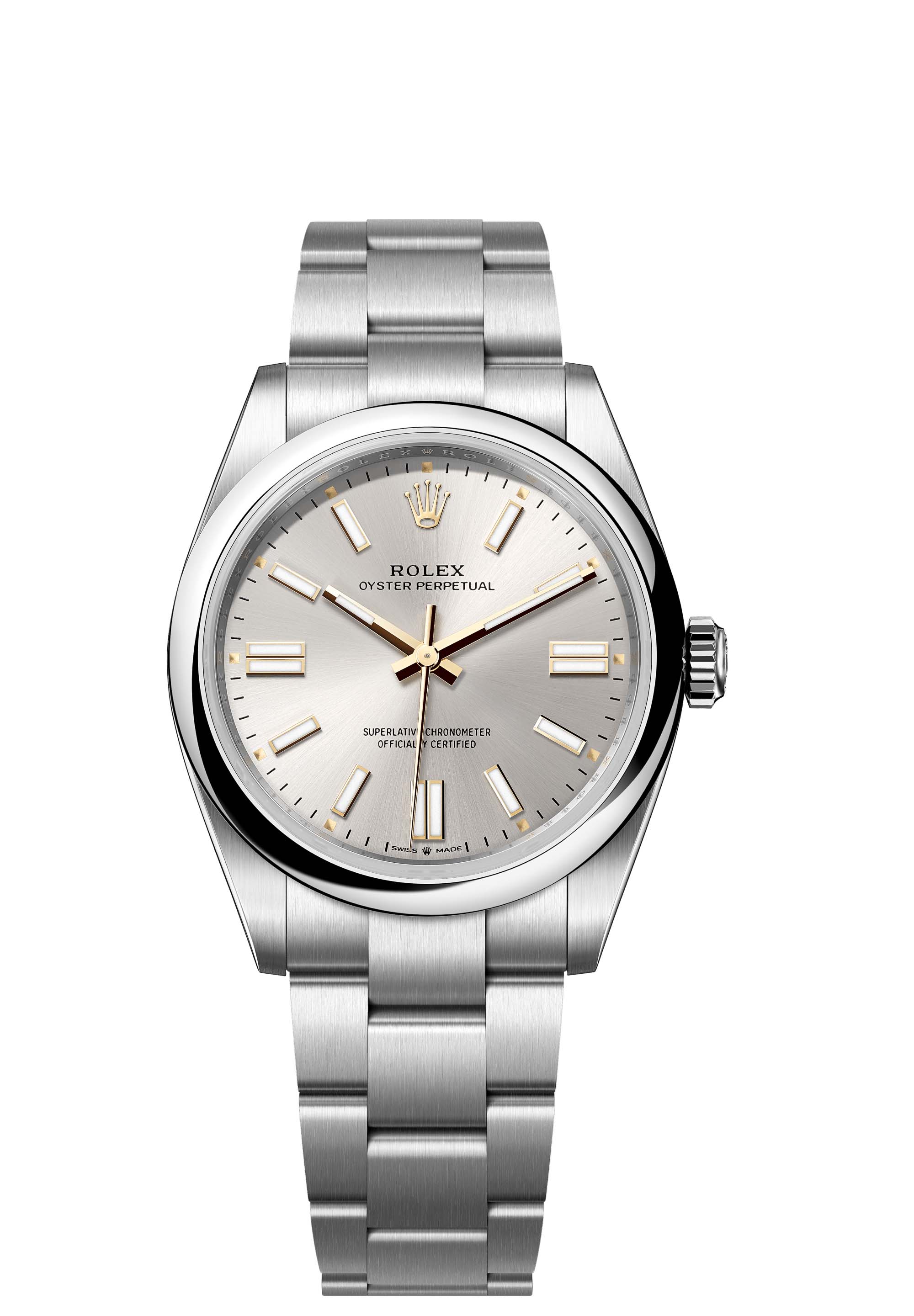 The Oyster Perpetual 41 with a silver dial and an Oyster bracelet.