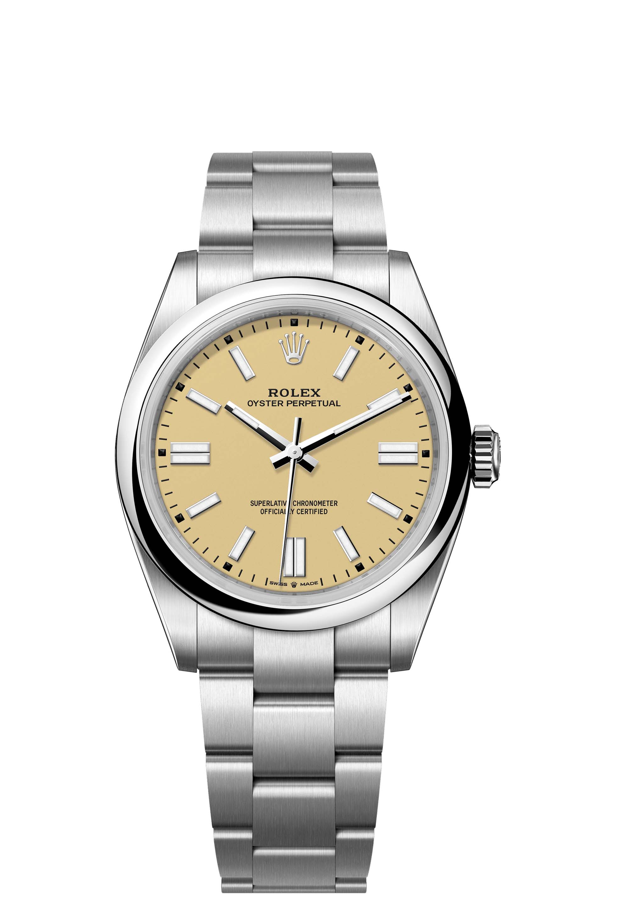 The Oyster Perpetual 41 with a beige dial and an Oyster bracelet.