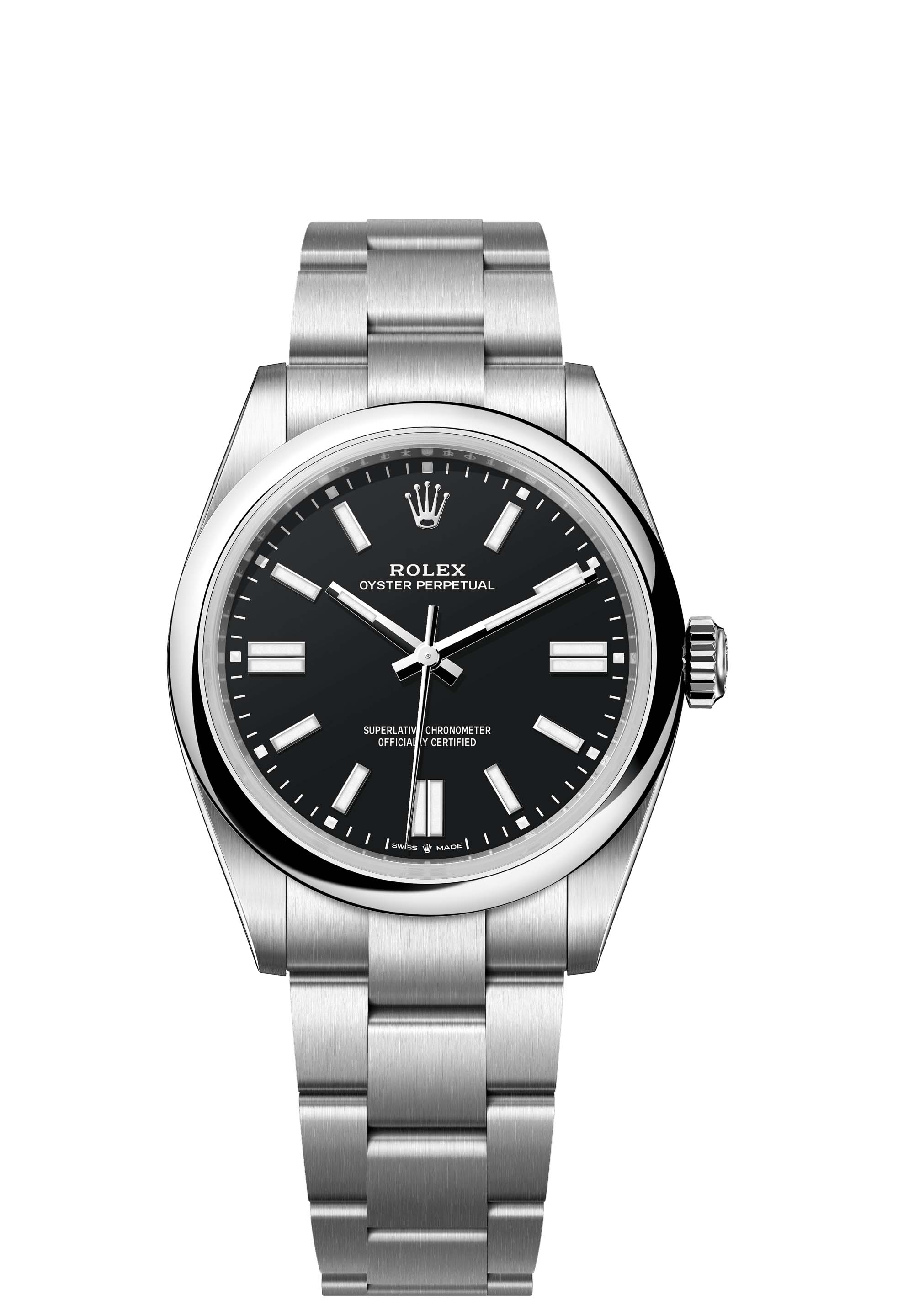 The Oyster Perpetual 41 with a black dial and an Oyster bracelet.