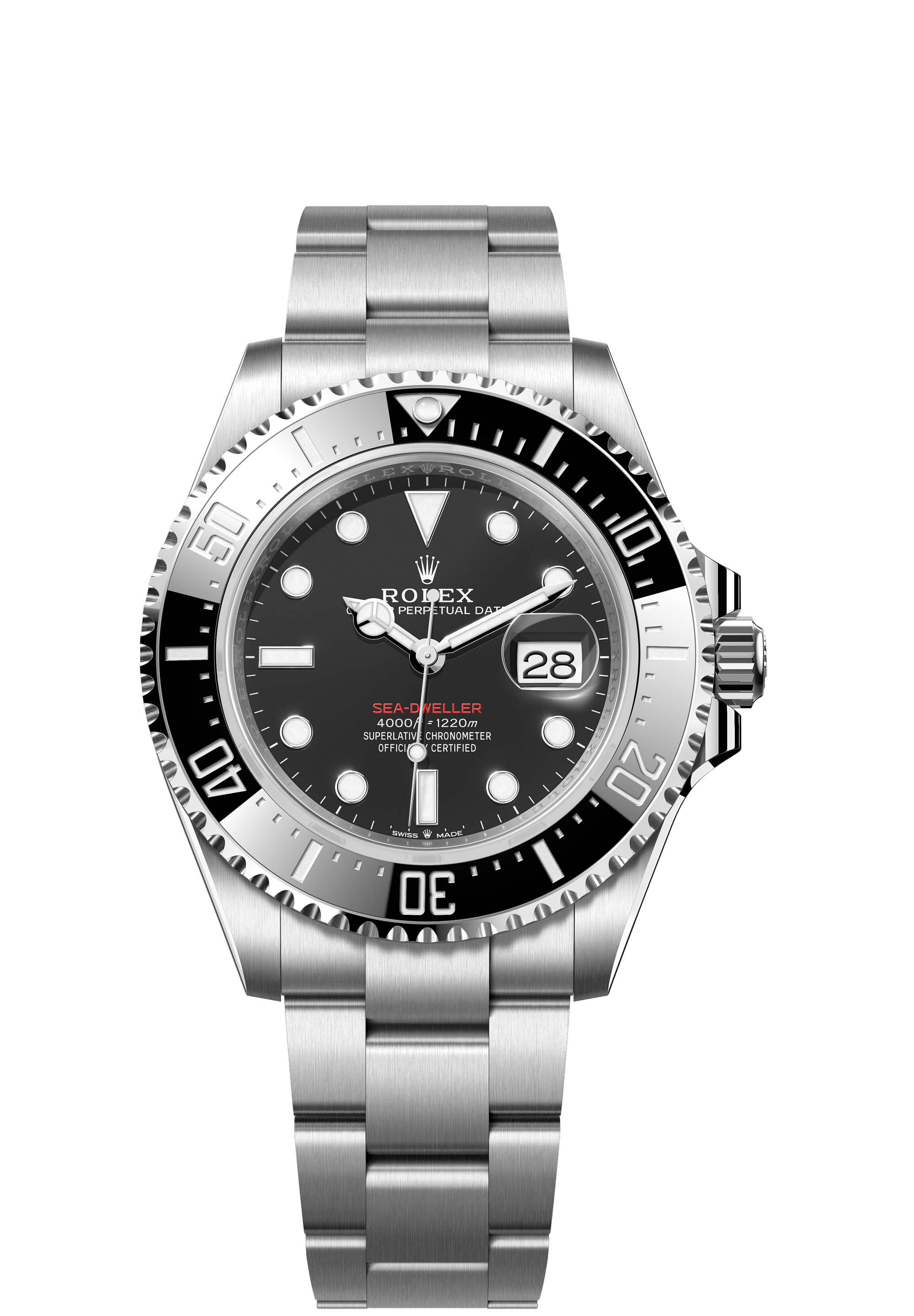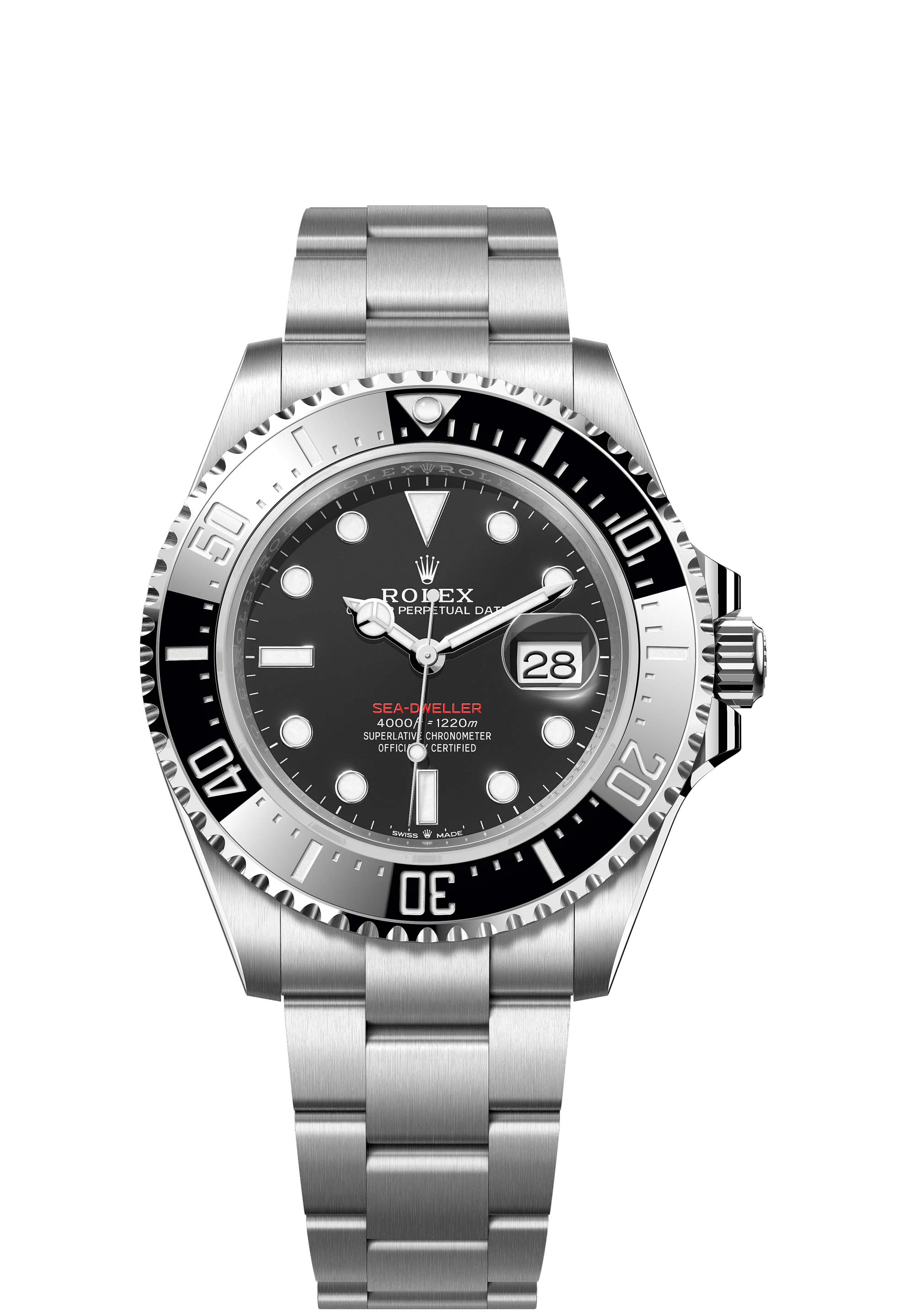 The Oyster Perpetual Sea-Dweller in Oystersteel with a Cerachrom bezel insert in black ceramic and an Oyster bracelet.