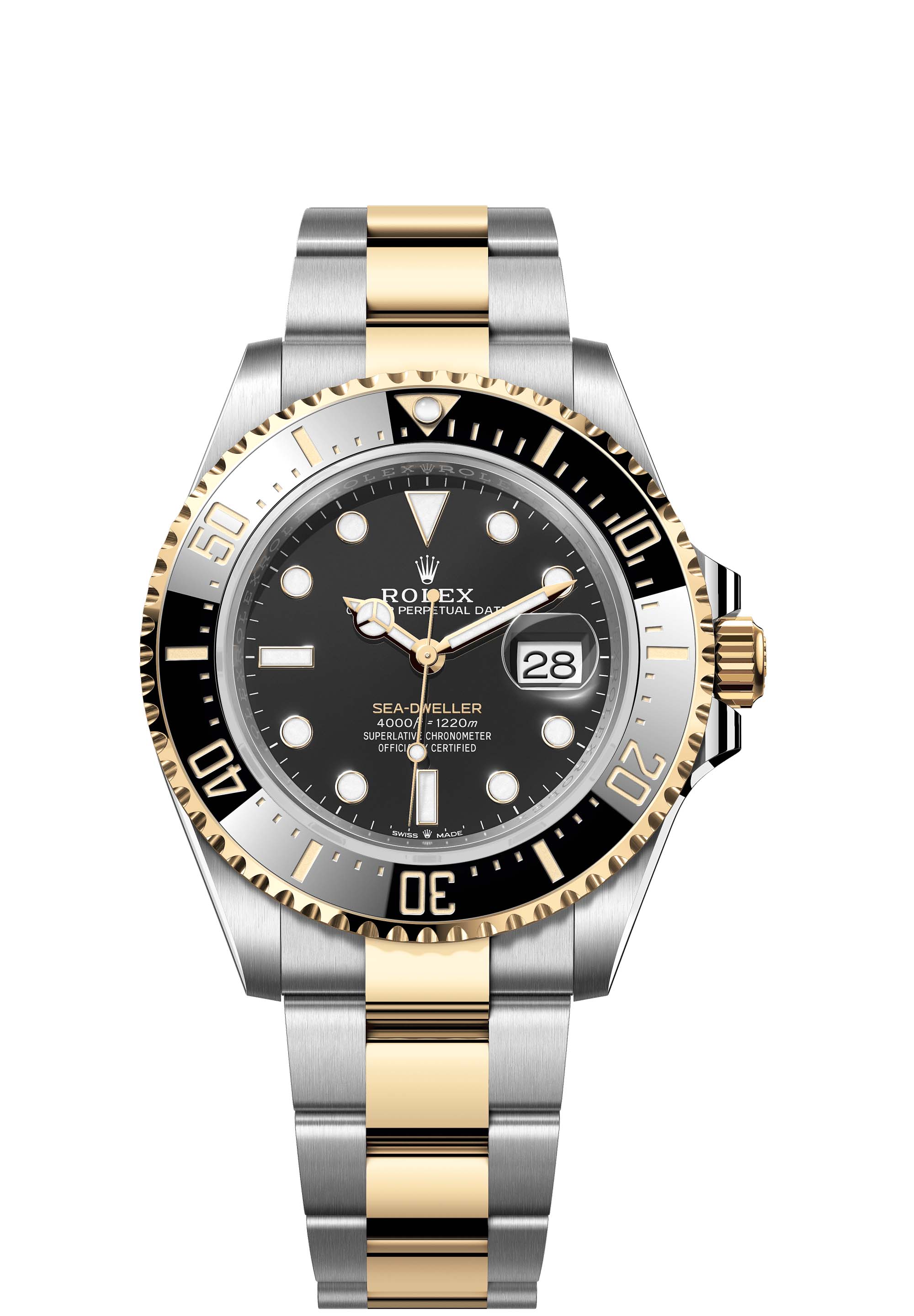 The Oyster Perpetual Sea-Dweller in Oystersteel and yellow gold with a Cerachrom bezel insert in black ceramic and an Oyster bracelet.