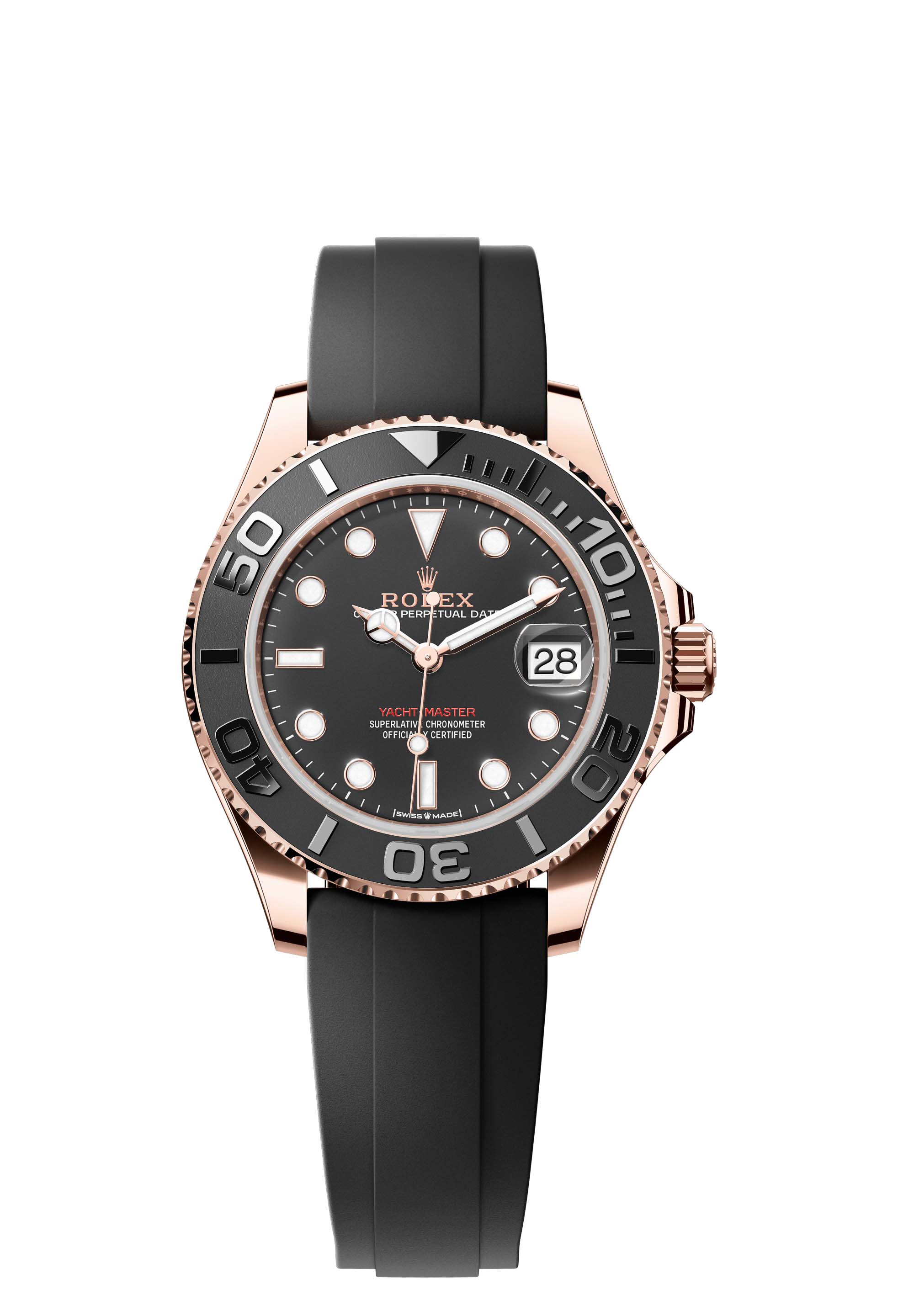 The Oyster Perpetual Yacht-Master 37 in 18 ct Everose gold with an Oysterflex bracelet.
