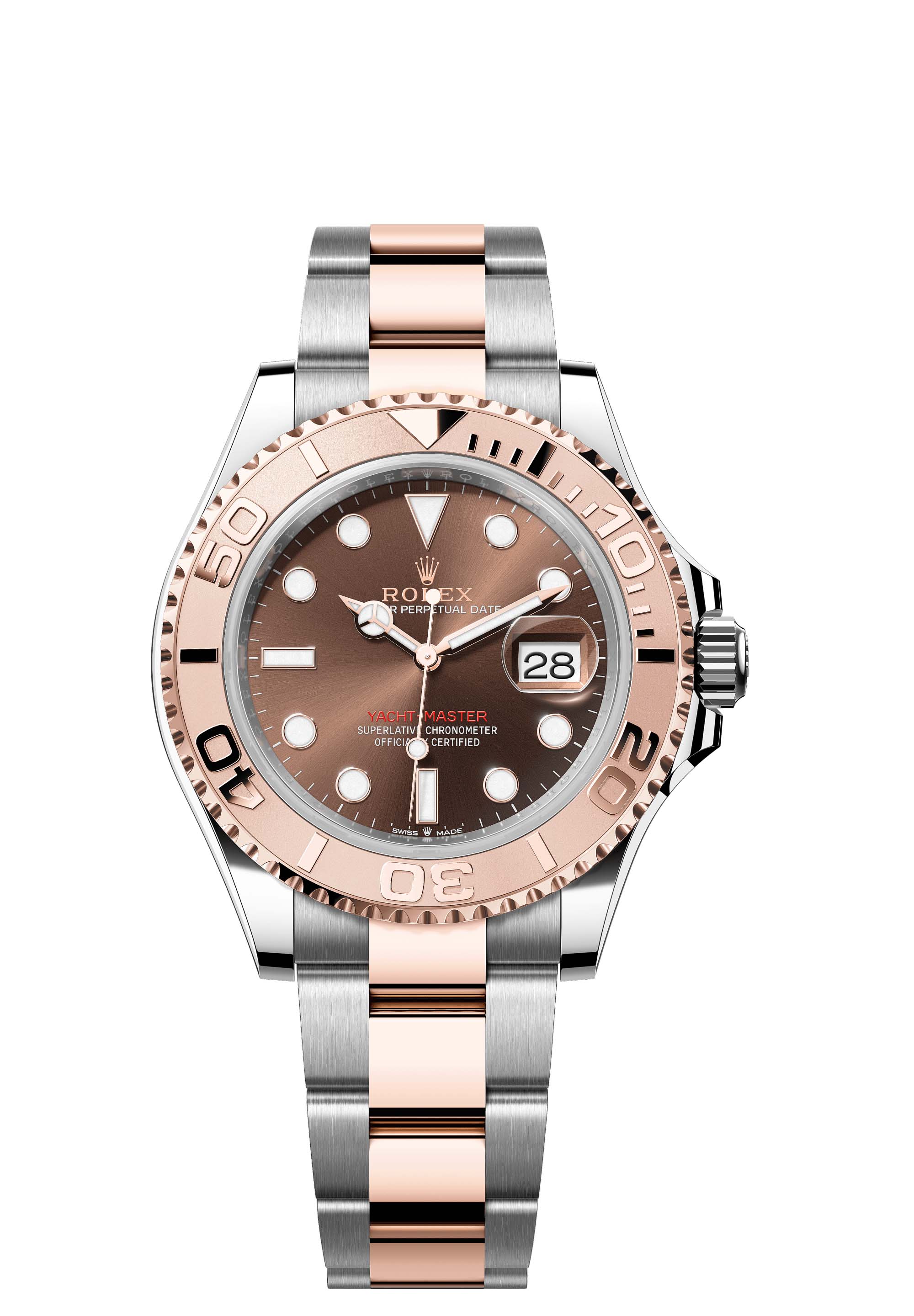 The Oyster Perpetual Yacht-Master 40 in Oystersteel and Everose gold with an Oyster bracelet.