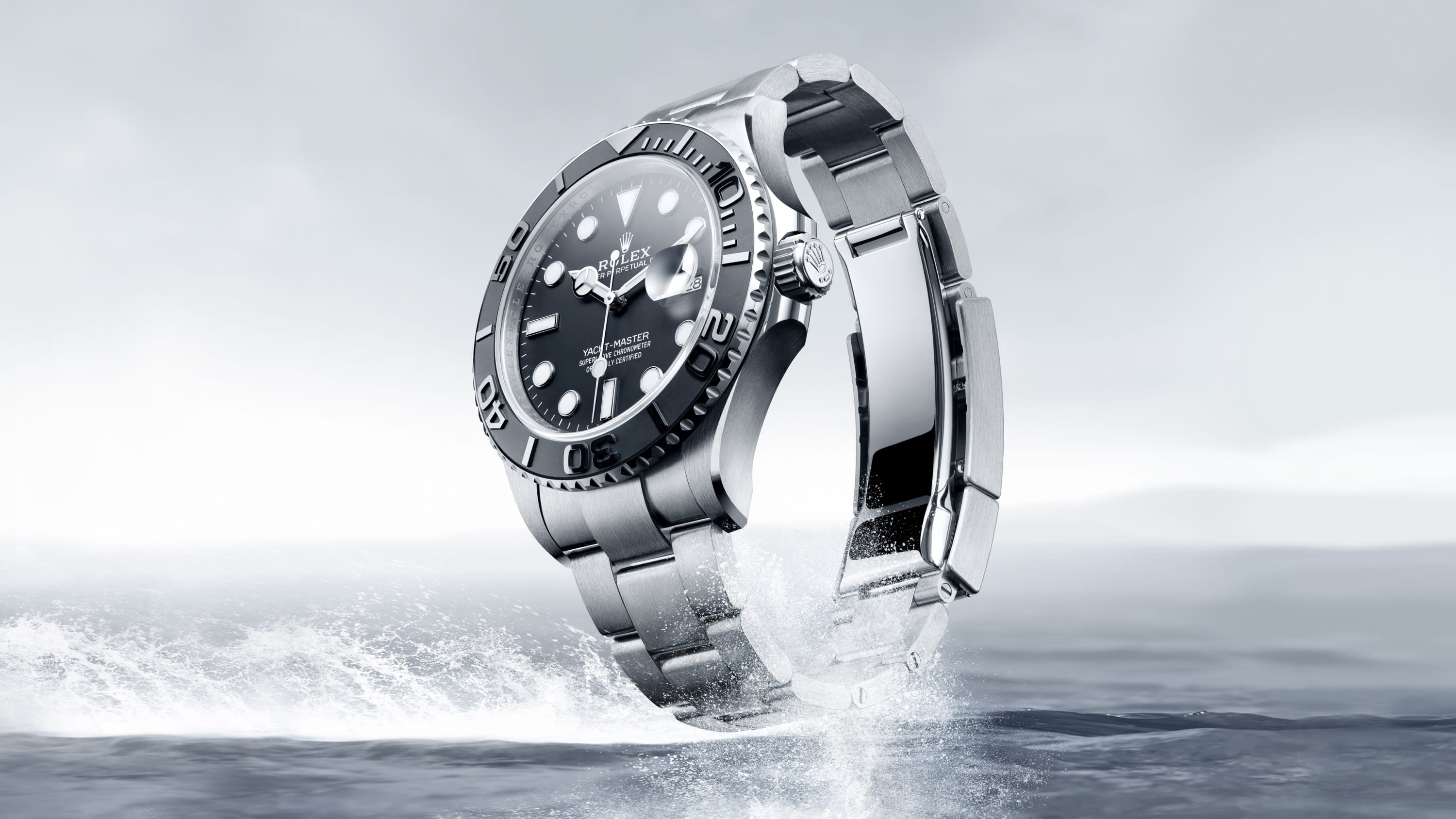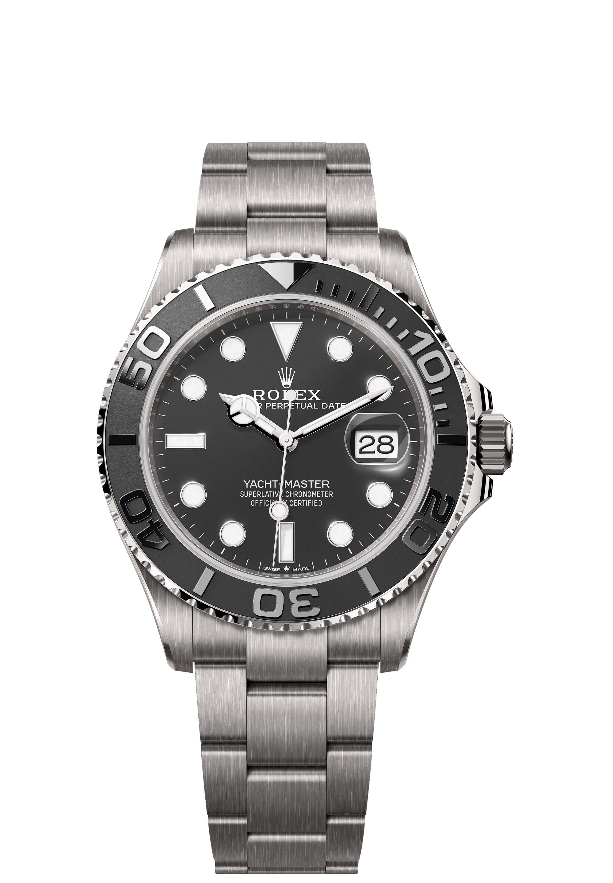 The Oyster Perpetual Yacht-Master 42 in RLX titanium with an intense black dial and an Oyster bracelet.
